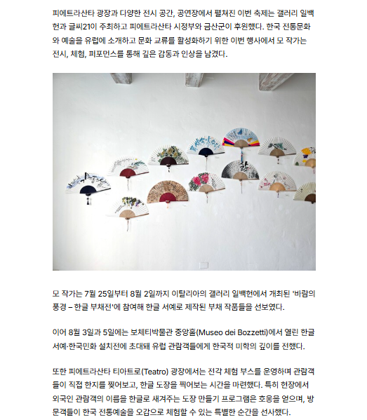 2025 이탈리아 피에트라산타 K-ART & CULTURE FESTIVAL 참가